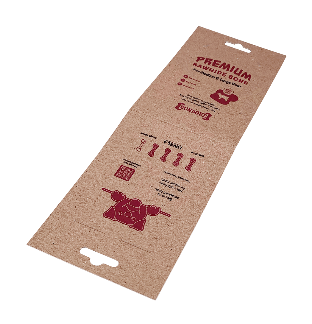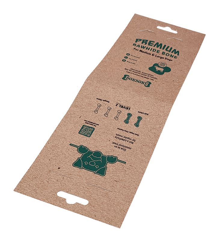 Bonbone is a simple, thoughtful packaging solution for rawhide dog bones that puts clarity and sustainability first.